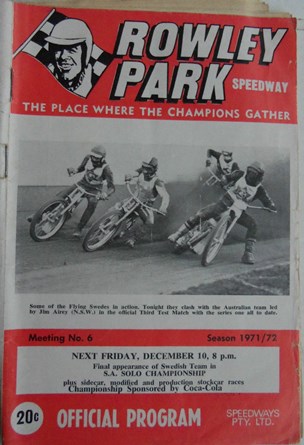 Matches raced by Sweden: 12/11/71: Perth Claremont Craven Filter Champ: Bob O'Leary 13+3, Anders Michanek 13+2, Soren Sjosten 12, Chum Taylor 12, Jim Phillips 10, Don Collins 9, Dud McKean 8, Bernt Persson 8, Jan Simensen 7, Les Sharpe 7, Abe Schneider 5, Pete Biston 5, Bengt Larsson 4, Bengt Jansson 3, Terry O'Leary 3, Olle Nygren 0, Les Leisk 0 18/12/71: Brisbane International Best Pairs - GB 31 (T Lomas 21, G Hunter 8, B Loakes 2); Queensland I 30 (T Hart 21, K Torpie 9); New South Wales 23 (B Van Praag 13, D Mills 10); Queensland II 22 (S Reinke 6, B Gourlay 16); Sweden 14 (O Nygren 5, J Simensen 6, B Loakes 3) 26/12/71: Liverpool Liverpool 46 (O Olsen 17, B Landels 12, J Ryman 9, B Van Praag 4, H Schippl 2, D Mills 2, N Cameron 0) Sweden 62 (A Michanek 17, S Sjosten 14, B Persson 14, B Larsson 6, J Simensen 6, B Jansson 5, O Nygren 0) 08/01/72: Brisbane Queensland 44 (S Reinke 11, J White 9, B Loakes 8, T Hart 6, K Torpie 5, B Gourlay 5, A Buckland 0) Sweden 64 (A Michanek 18, S Sjosten 17, B Persson 14, B Larsson 6, J Simensen 4, B Jansson 3, O Nygren 2) 17/01/72: Rockhampton Rockhampton 50 (J Airey 17, J White 10, J Boulger 9, J Langfield 7, B Loakes 7, M Brown 0) Sweden 58 (S Sjosten 15, A Michanek 13, B Persson 12, J Simensen 8, B Larsson 5, O Nygren 4, B Jansson 1) City of Rockhampton Three-Lap Championship: 1st: A Michanek, 2nd: J Boulger, 3rd: J Airey |